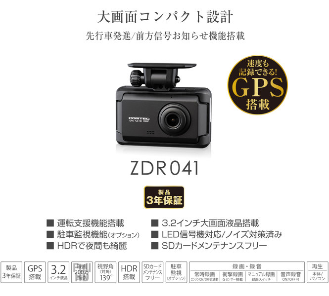 - 作品タイトル: ZDR041 / 3.2インチ液晶1カメラドライブレコーダー