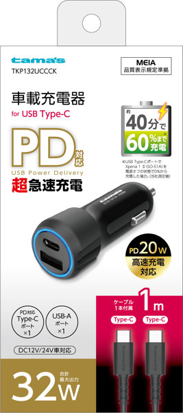 PD20W カーチャージャー C to C TKP132UCCCK